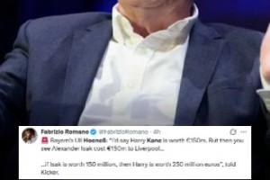 你觉得呢?赫内斯:如果伊萨克值1.5亿欧,那凯恩就值2.5亿