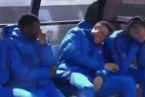 法国替补席笑嘻了~姆巴佩笑出表情包,奥利塞捂脸实在憋不住啦~